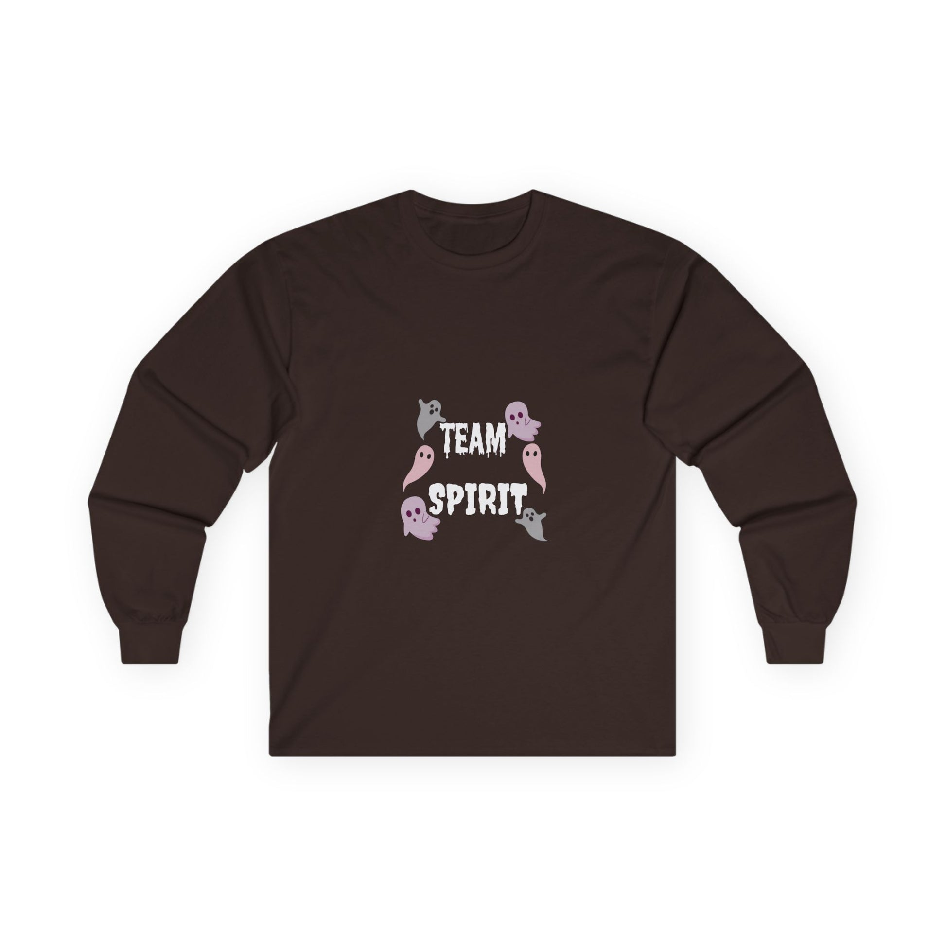 This Halloween-themed long sleeve tee exudes spooky vibes, perfect for those who love the excitement of the holiday season. It is ideal for adults looking to indulge in the festivities of Halloween and embrace the spirit of the occasion.